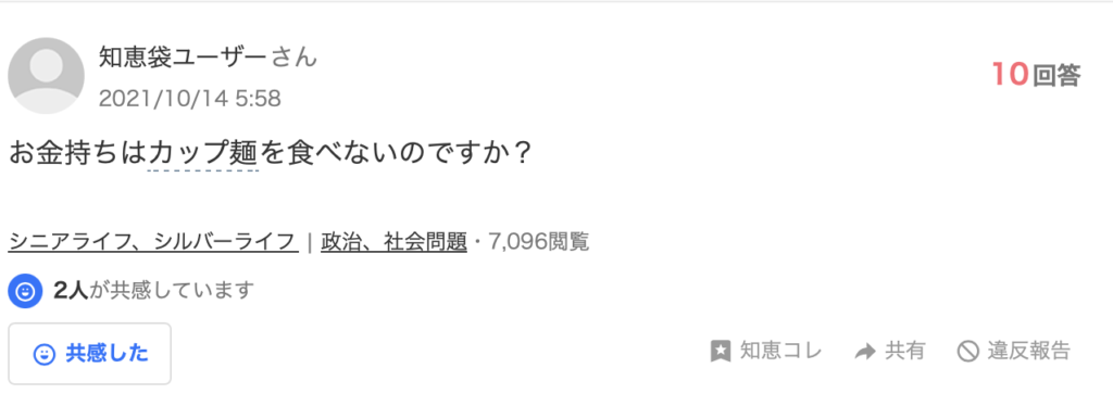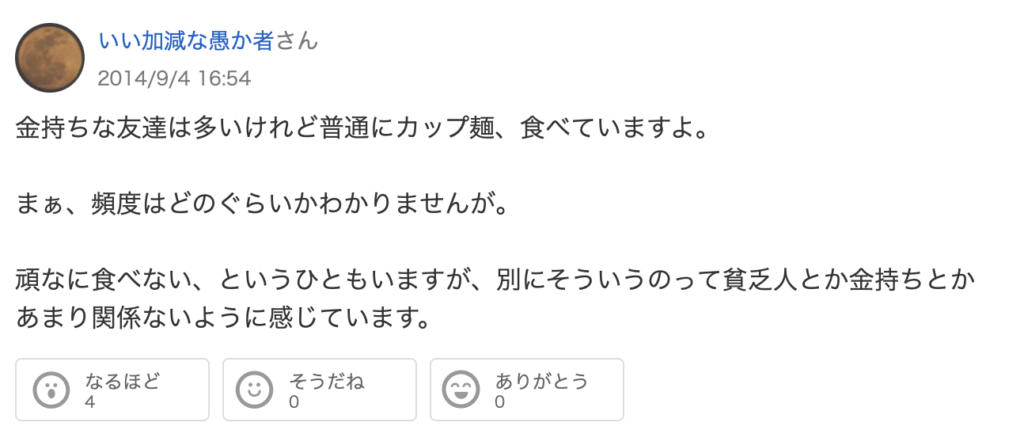 「カップ麺は貧乏人の食べ物」という意見を見ますが、